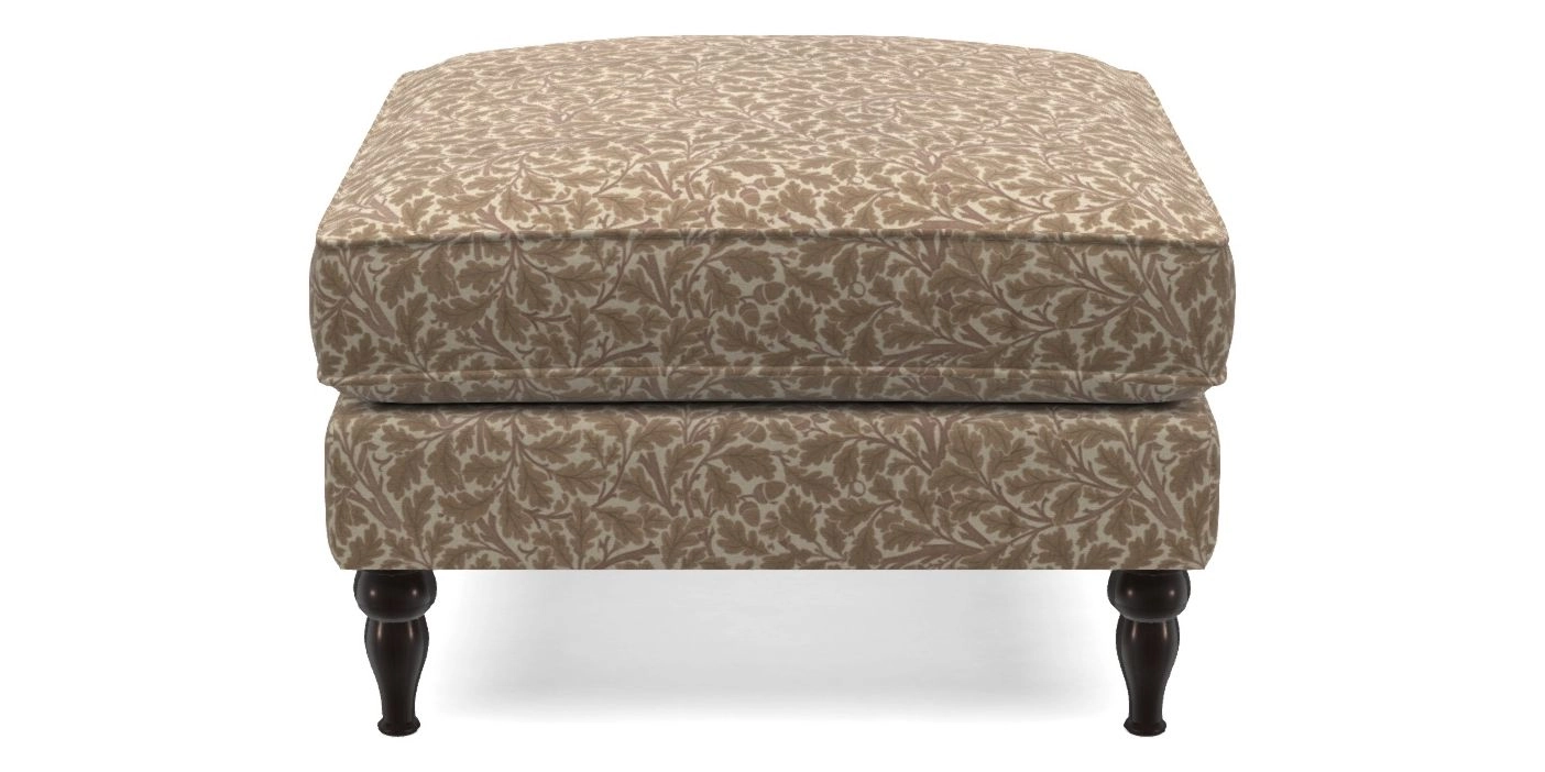 A square, deeply padded footstool with turned legs and castors, offering classic style with practicality. View other products in this range.