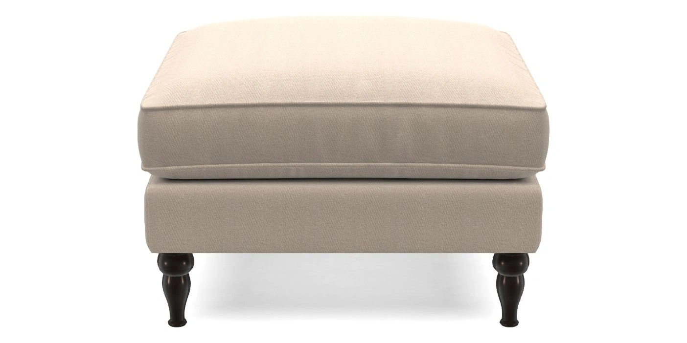 A square, deeply padded footstool with turned legs and castors, offering classic style with practicality. View other products in this range.
