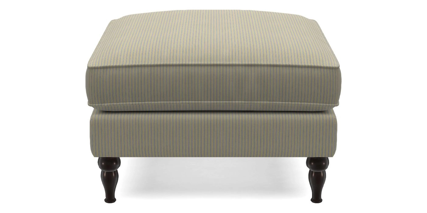 A square, deeply padded footstool with turned legs and castors, offering classic style with practicality. View other products in this range.