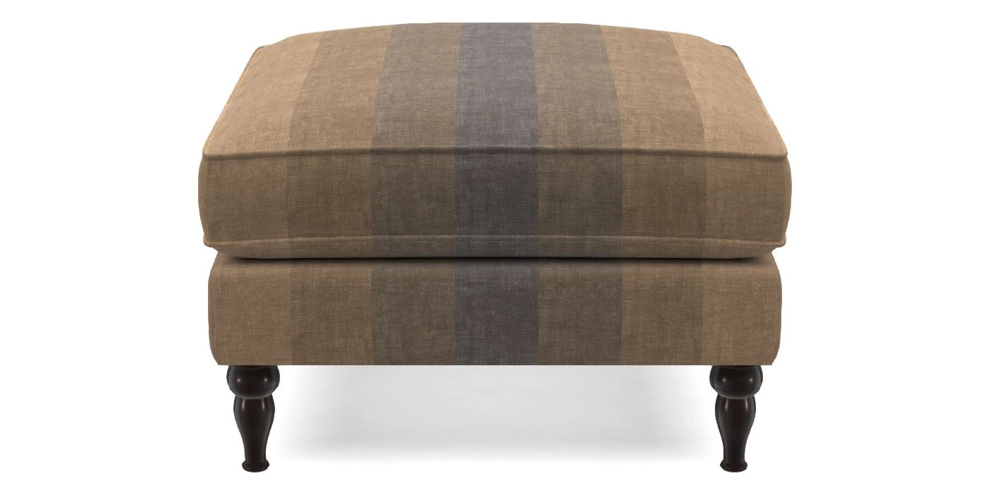 A square, deeply padded footstool with turned legs and castors, offering classic style with practicality. View other products in this range.