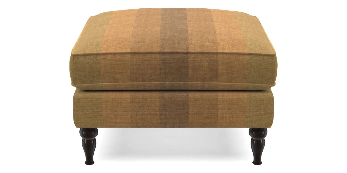 A square, deeply padded footstool with turned legs and castors, offering classic style with practicality. View other products in this range.