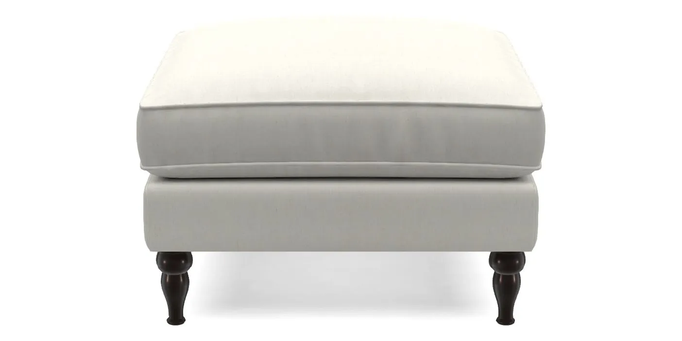 A square, deeply padded footstool with turned legs and castors, offering classic style with practicality. View other products in this range.