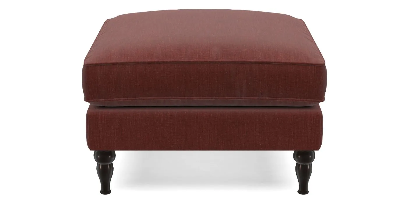 A square, deeply padded footstool with turned legs and castors, offering classic style with practicality. View other products in this range.