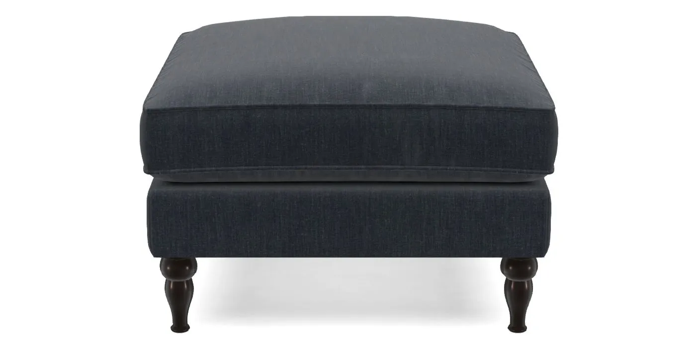 A square, deeply padded footstool with turned legs and castors, offering classic style with practicality. View other products in this range.