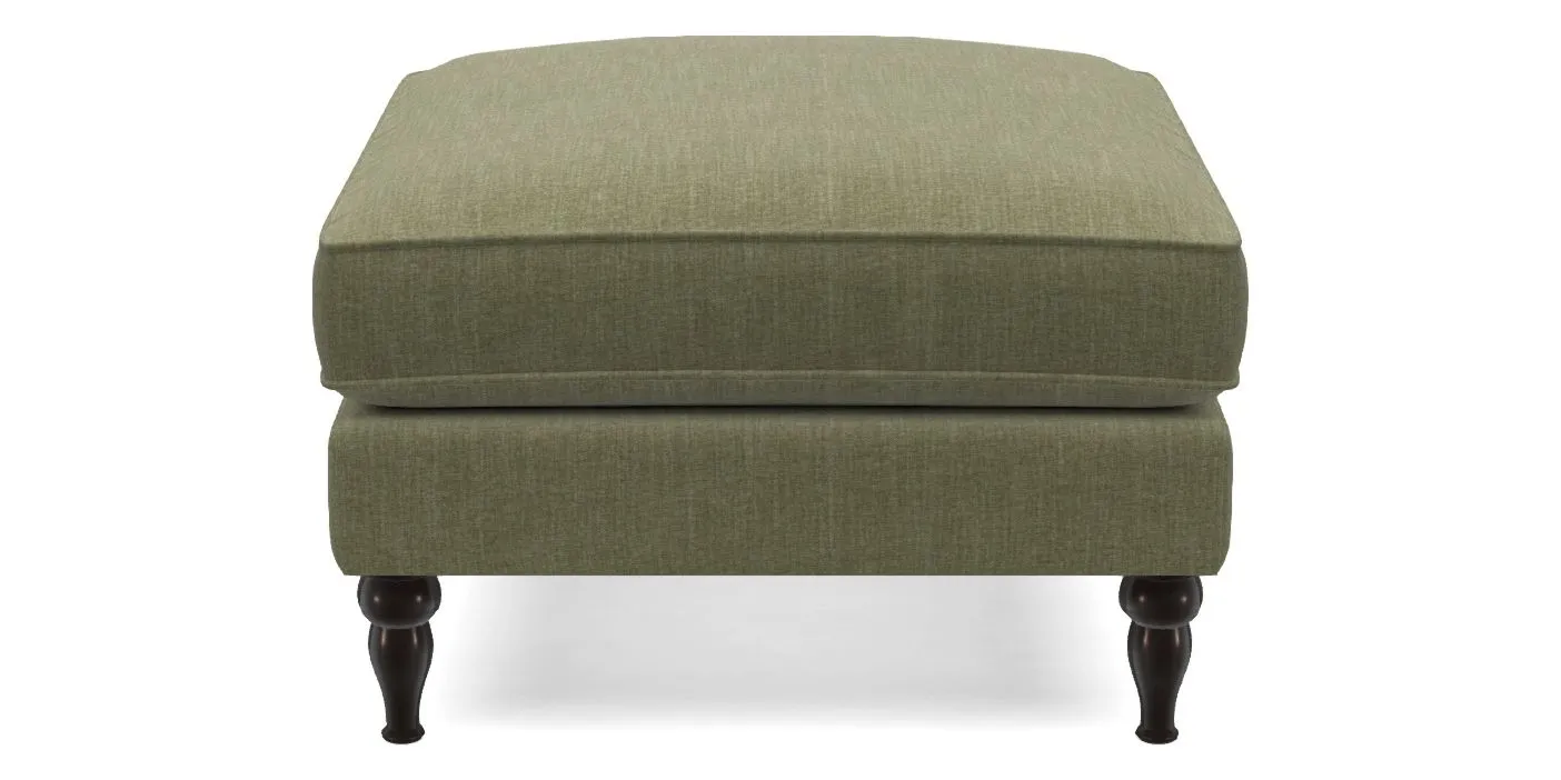 A square, deeply padded footstool with turned legs and castors, offering classic style with practicality. View other products in this range.