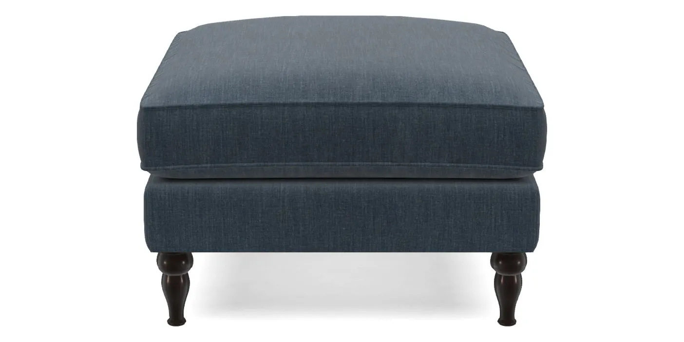 A square, deeply padded footstool with turned legs and castors, offering classic style with practicality. View other products in this range.