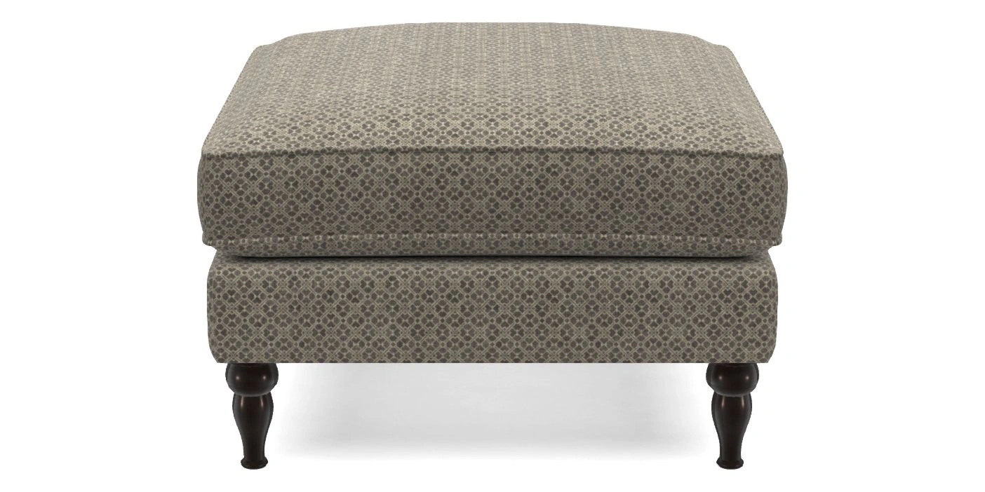 A square, deeply padded footstool with turned legs and castors, offering classic style with practicality. View other products in this range.