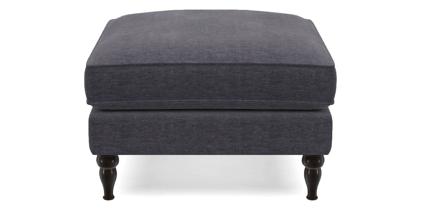 A square, deeply padded footstool with turned legs and castors, offering classic style with practicality. View other products in this range.