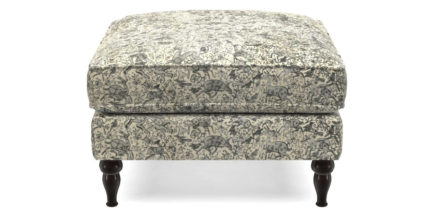 A square, deeply padded footstool with turned legs and castors, offering classic style with practicality. View other products in this range.