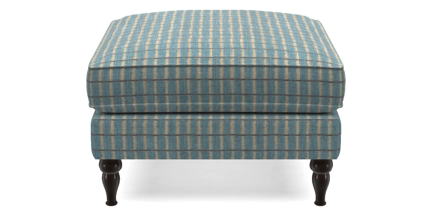 A square, deeply padded footstool with turned legs and castors, offering classic style with practicality. View other products in this range.