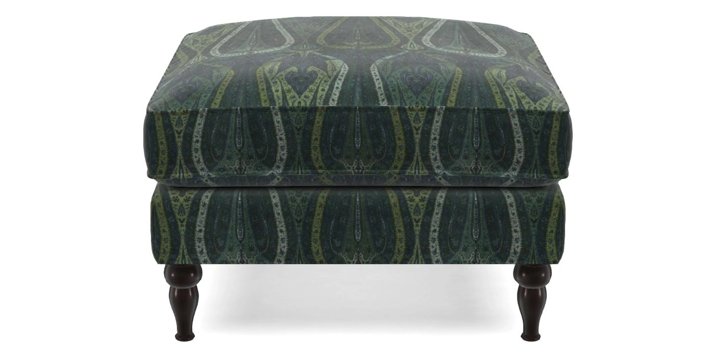 Cooksbridge Bespoke Standard Footstools in V&A Threads of India Opulent Velvets - Paisley Splendour : V&A Threads of India Opulent Velvets - Paisley Splendour Hunter