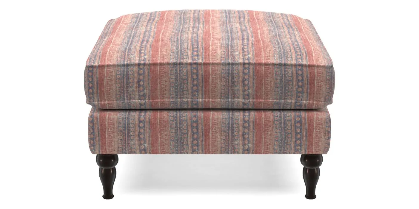 A square, deeply padded footstool with turned legs and castors, offering classic style with practicality. View other products in this range.