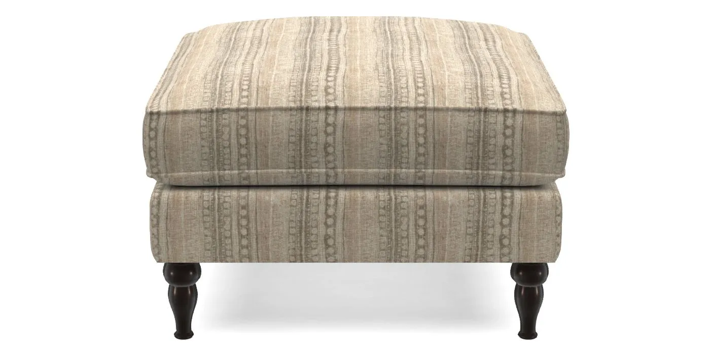 A square, deeply padded footstool with turned legs and castors, offering classic style with practicality. View other products in this range.