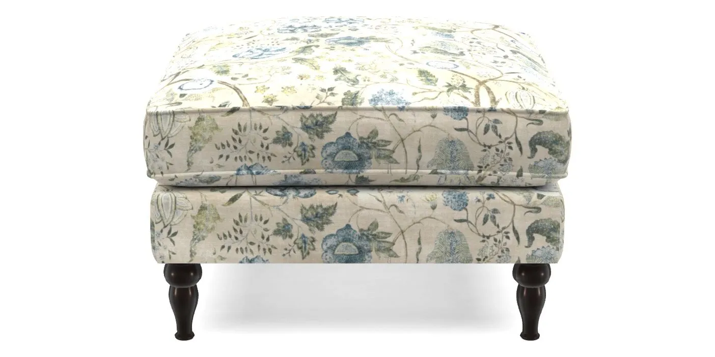 A square, deeply padded footstool with turned legs and castors, offering classic style with practicality. View other products in this range.