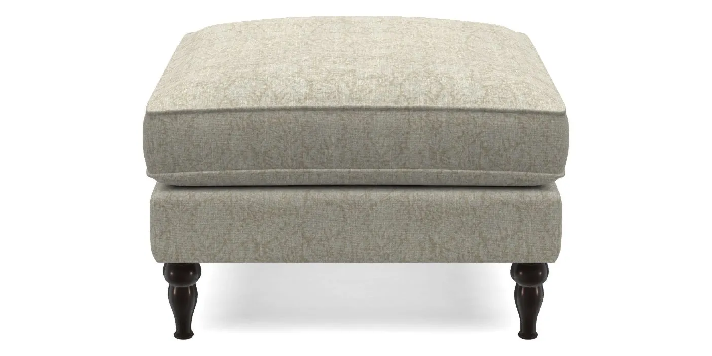 A square, deeply padded footstool with turned legs and castors, offering classic style with practicality. View other products in this range.
