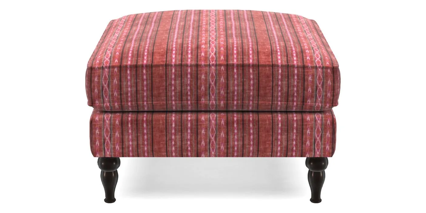 A square, deeply padded footstool with turned legs and castors, offering classic style with practicality. View other products in this range.