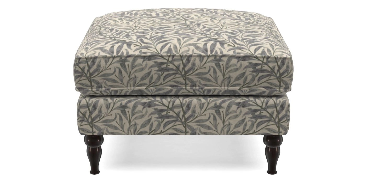 A square, deeply padded footstool with turned legs and castors, offering classic style with practicality. View other products in this range.