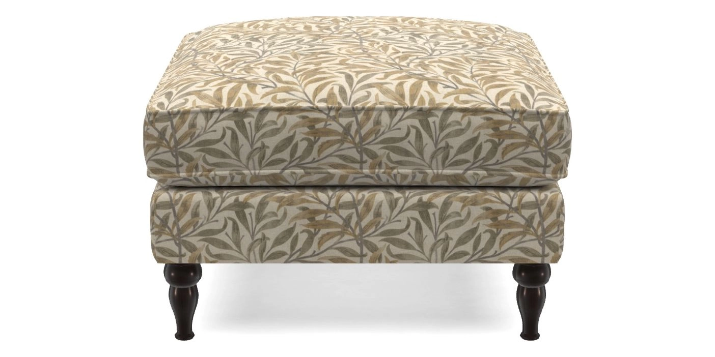 A square, deeply padded footstool with turned legs and castors, offering classic style with practicality. View other products in this range.