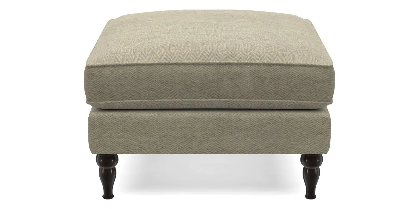 A square, deeply padded footstool with turned legs and castors, offering classic style with practicality. View other products in this range.
