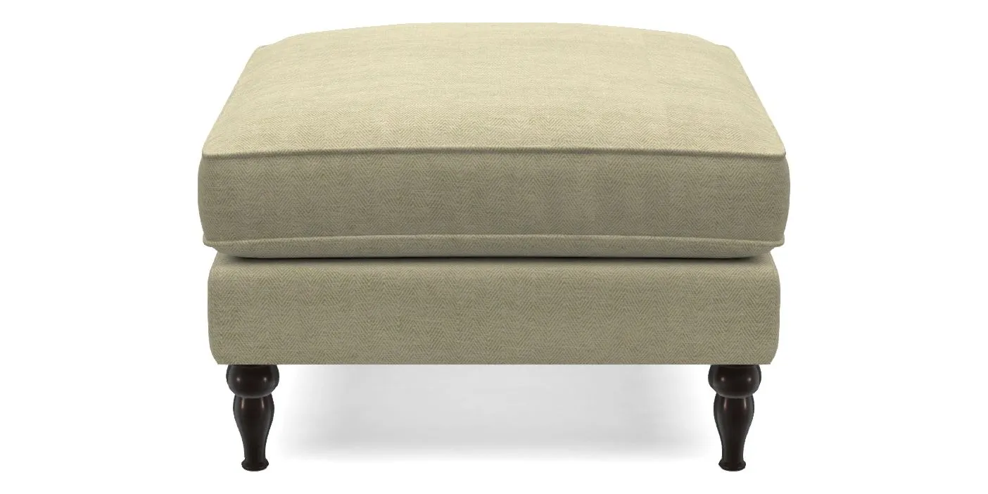 A square, deeply padded footstool with turned legs and castors, offering classic style with practicality. View other products in this range.