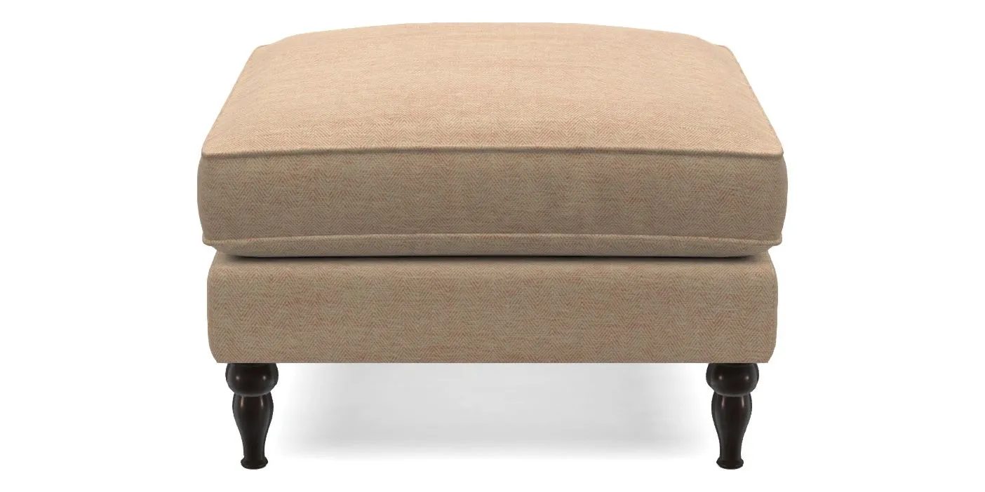A square, deeply padded footstool with turned legs and castors, offering classic style with practicality. View other products in this range.