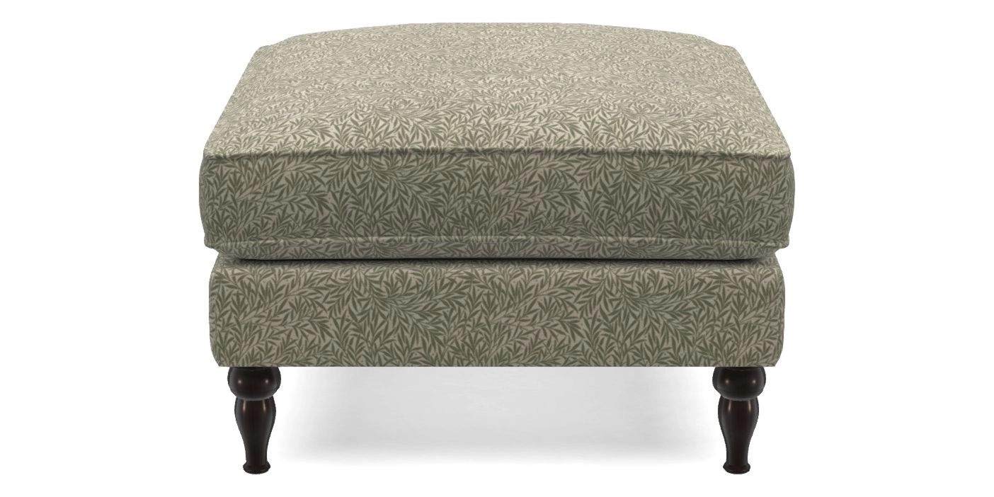 A square, deeply padded footstool with turned legs and castors, offering classic style with practicality. View other products in this range.
