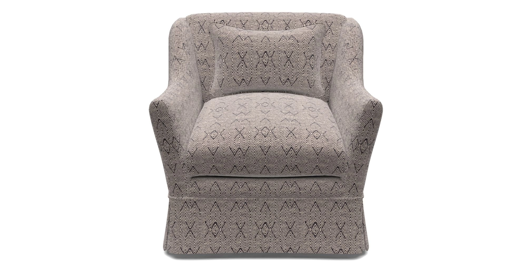 Elegant and inviting, with narrow, dipped arms that subtly turn outwards, and a low, gently sloping sprung back, offering a contemporary twist on classic comfort. Generous, deep-cushioned seat, with two wide scatter cushions for additional comfort.