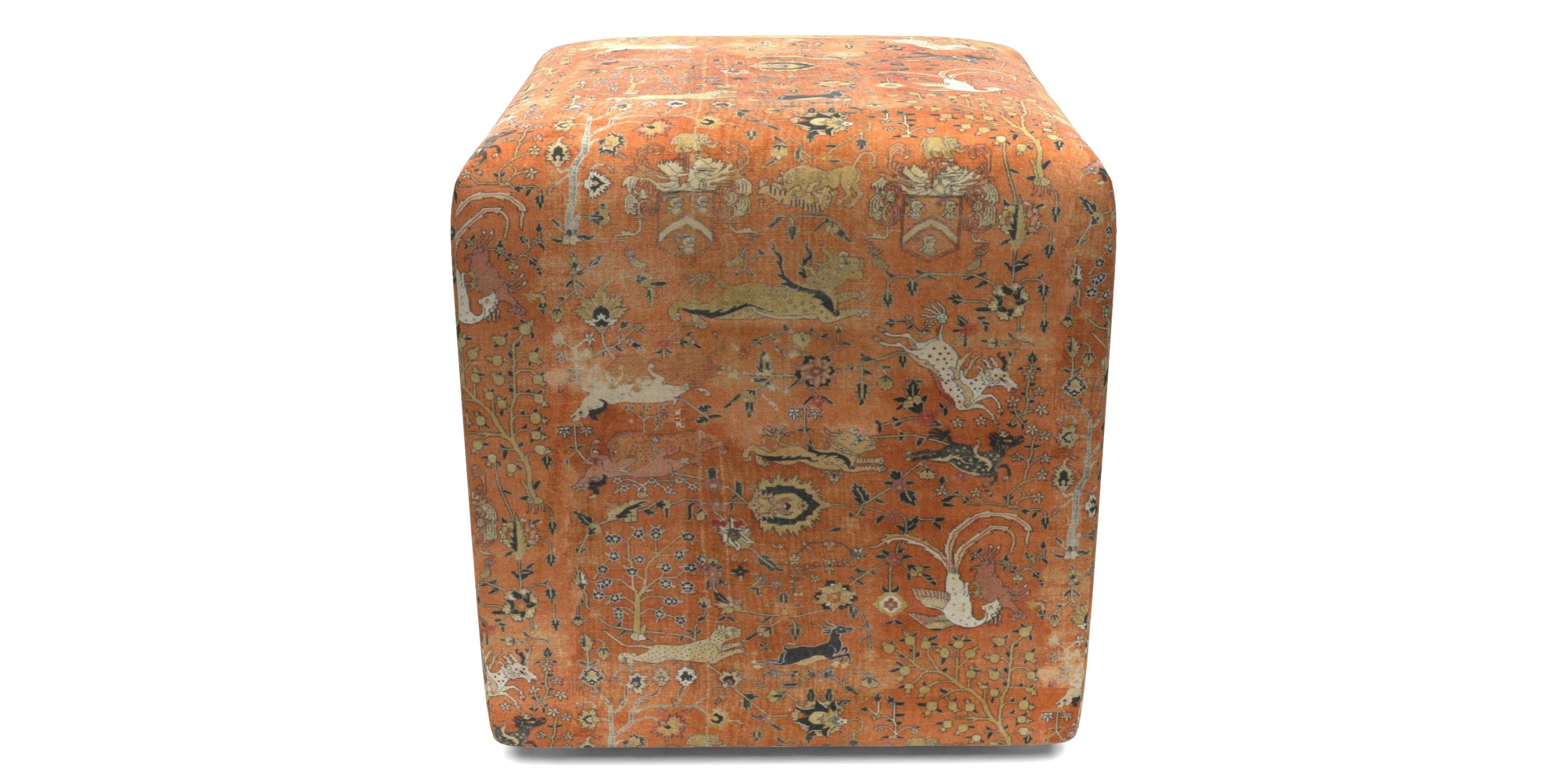 • Cube Footstools in V&A Threads of India Opulent Velvets - Lahore Dynasty : V&A Threads of India Opulent Velvets - Lahore Dynasty Flame