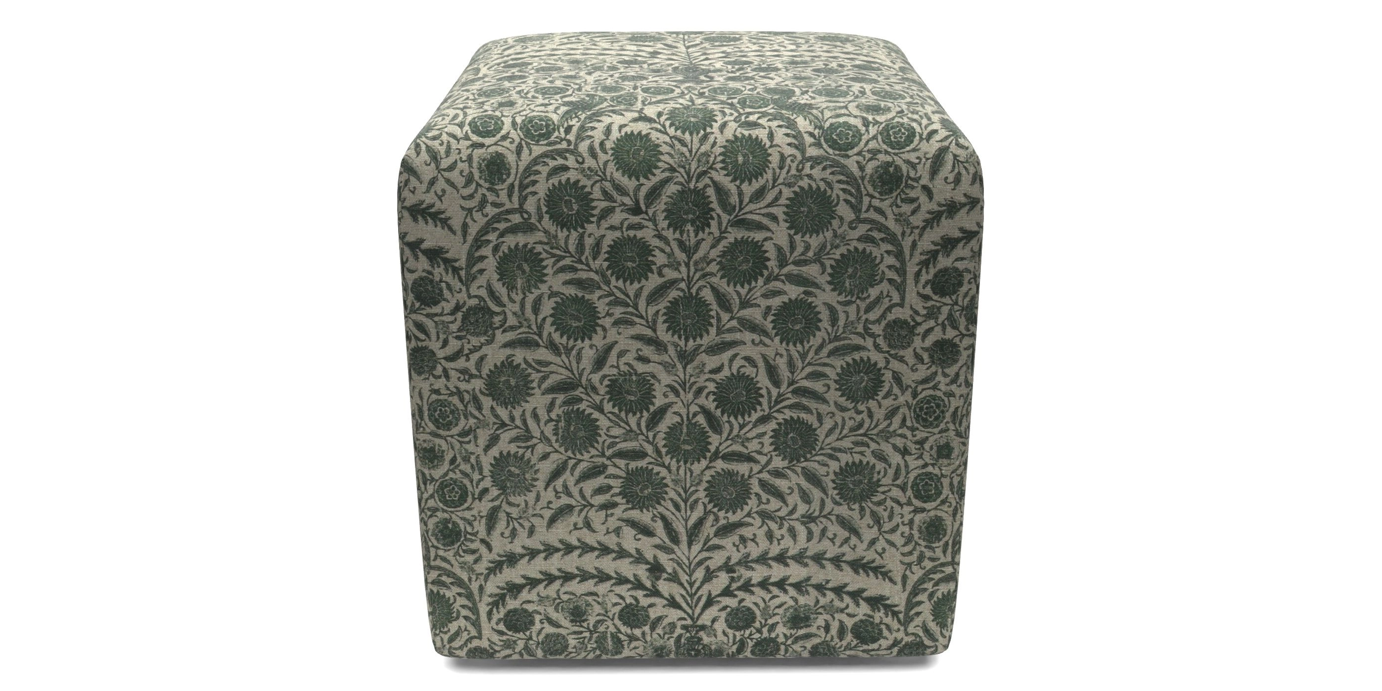 • Cube Bespoke Standard Footstools in V&A Threads of India - Mughal Arbour : Hunter