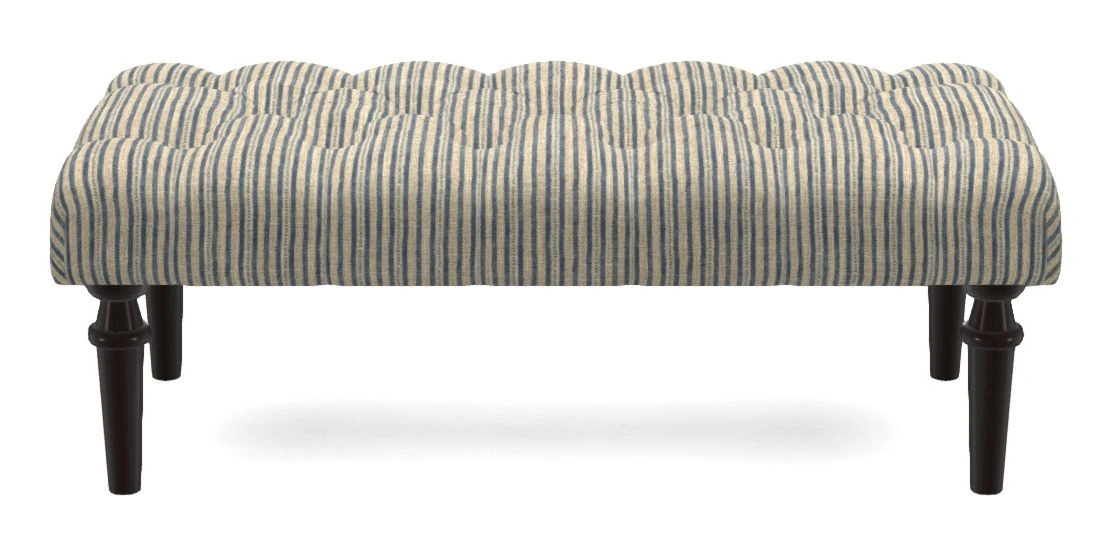 Pentlow Bespoke Small Buttoned Footstools in Sussex Stripe : Sky