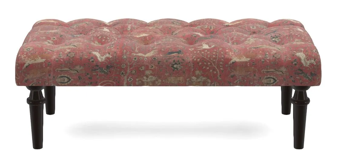 Pentlow Bespoke Small Buttoned Footstools in V&A Threads of India - Lahore Dynasty : Rouge