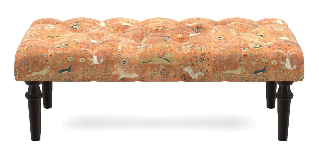 • Pentlow Bespoke Small Buttoned Footstools in V&A Threads of India Opulent Velvets - Lahore Dynasty : V&A Threads of India Opulent Velvets - Lahore Dynasty Flame