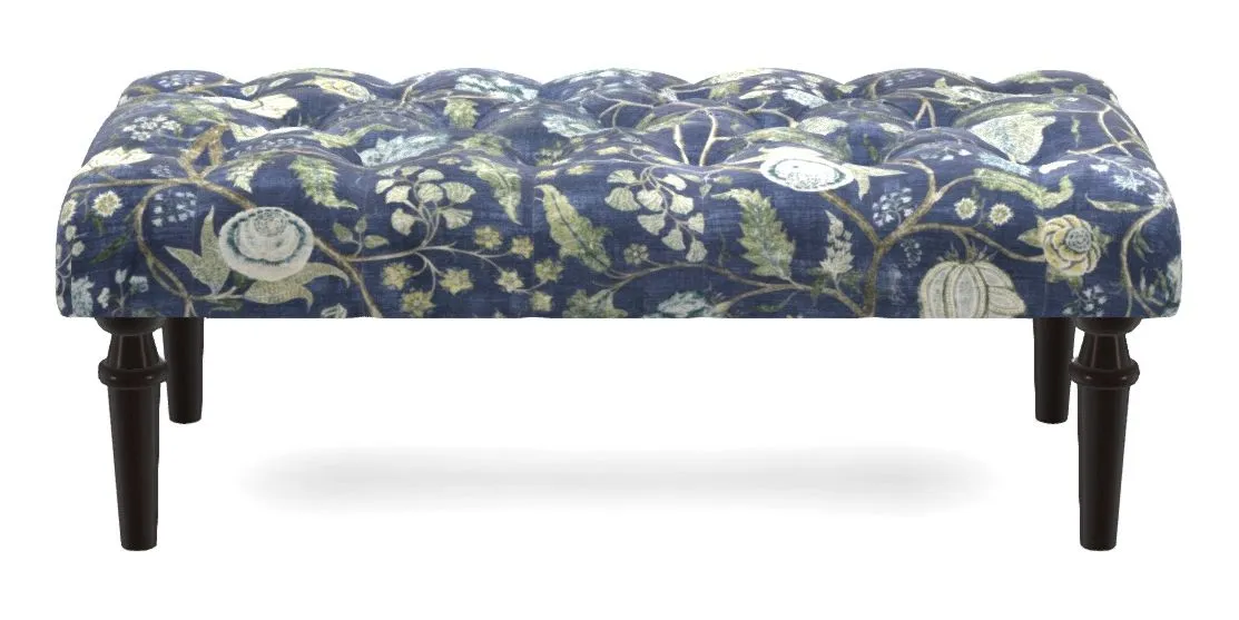 • Pentlow Bespoke Small Buttoned Footstools in V&A Threads of India Opulent Velvets - Tree of Life : Ink
