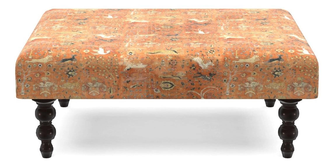 Porthallow Bespoke Footstools A in V&A Threads of India Opulent Velvets - Lahore Dynasty : Flame