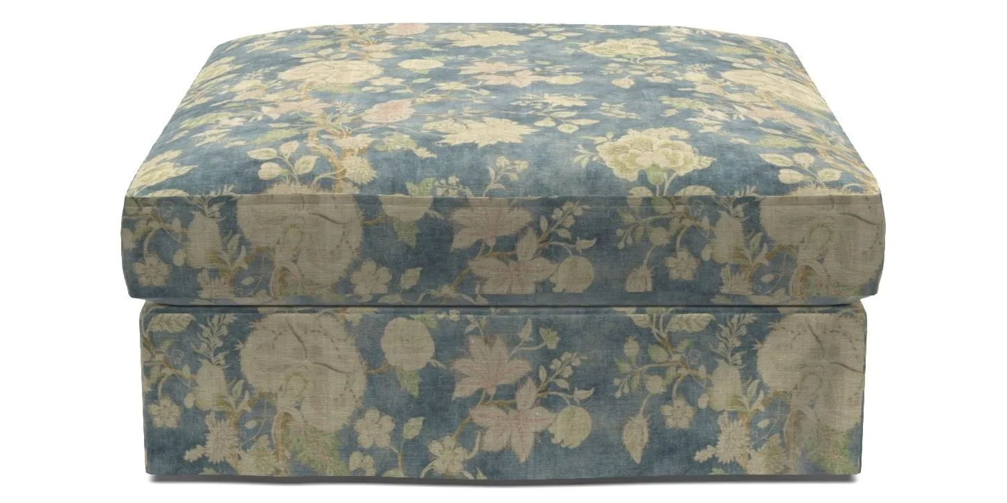 Slingsby Bespoke Loose Cover Footstools in Floral Linen : Tryst Marine