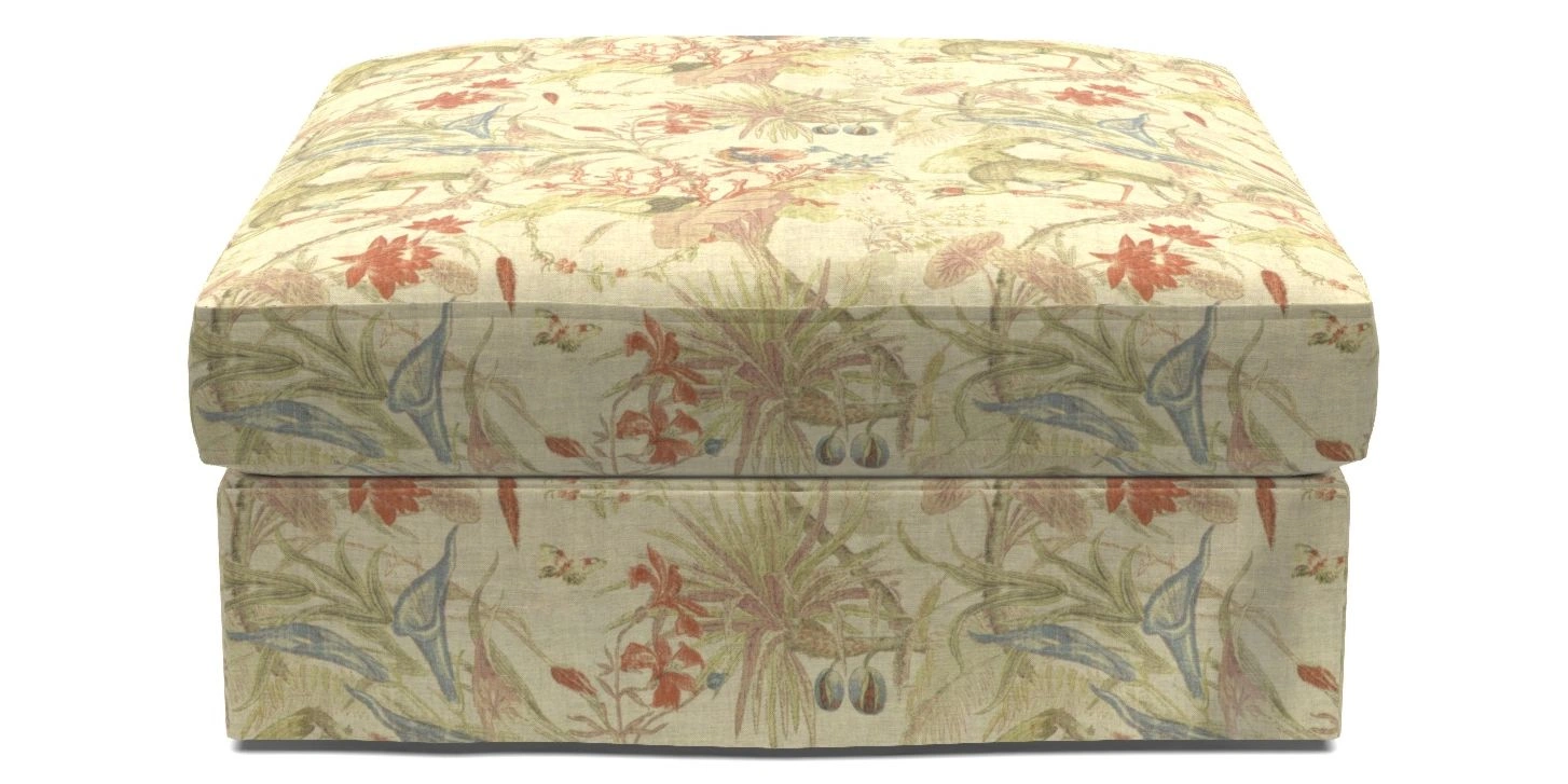 Slingsby Bespoke Loose Cover Footstools in Floral Linen : Lily Pad Vermillion