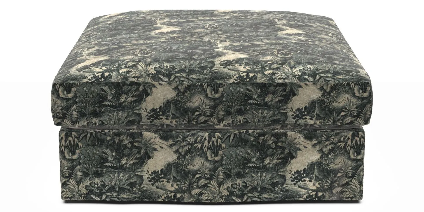 Slingsby Bespoke Loose Cover Footstools in RHS Botanicals on Velvet - Ferns Toile : RHS Botanicals on Velvet - Ferns Toile Spruce