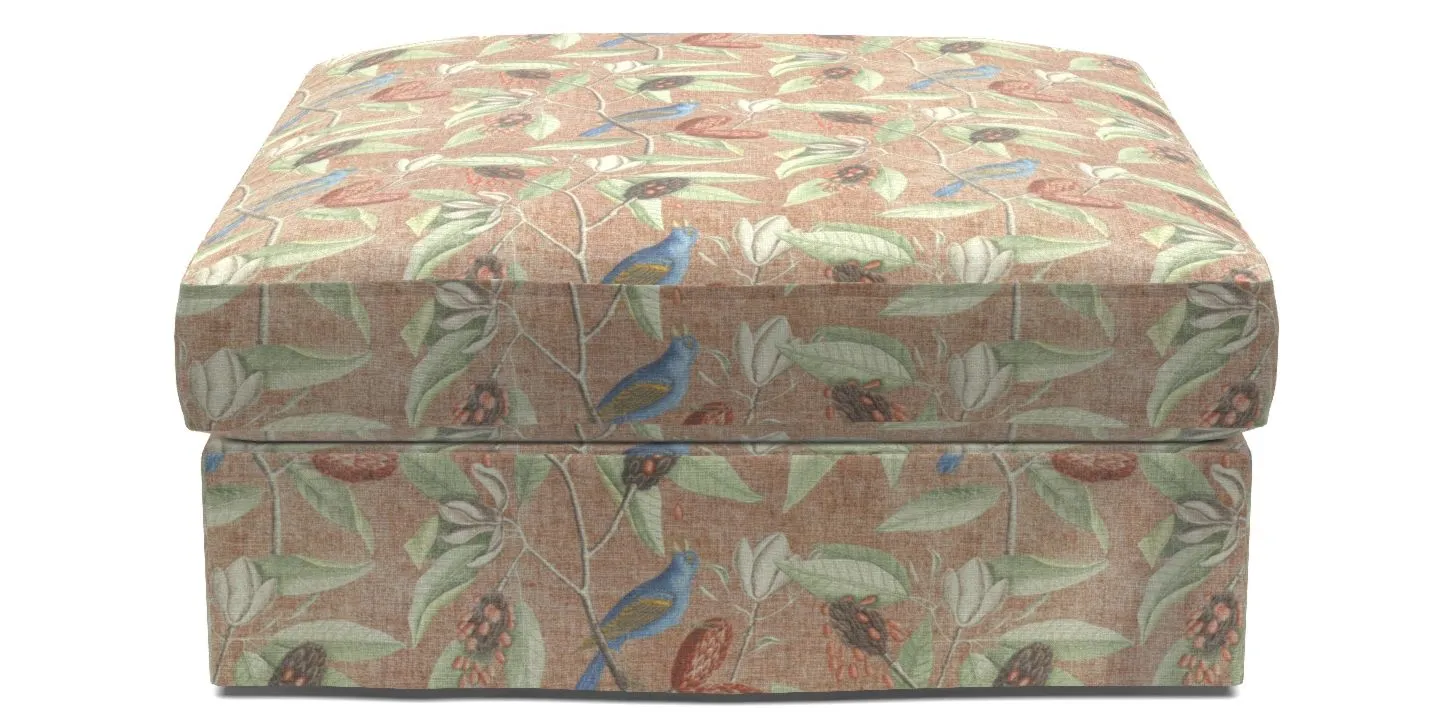 • Slingsby Bespoke Loose Cover Footstools in RHS Botanicals - Mark Catesby Grosbeak : Terracotta