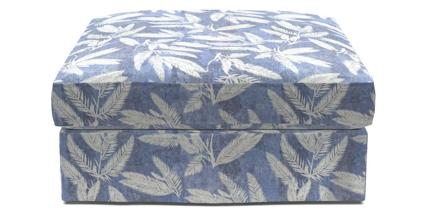 Slingsby Bespoke Loose Cover Footstools in RHS Botanicals - Palm Leaf : Indigo