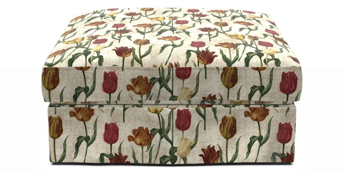 Slingsby Bespoke Loose Cover Footstools in RHS Botanicals on Velvet - Pieter van Kouwenhoorn Tulips : Natural