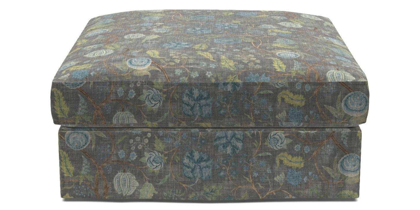 Slingsby Bespoke Loose Cover Footstools in V&A Threads of India on Linen - Tree of Life : V&A Threads of India on Linen - Tree of Life Slate