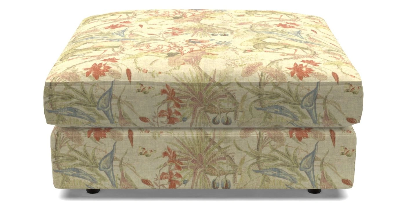 Slingsby Bespoke Standard Footstools in Floral Linen : Lily Pad Vermillion