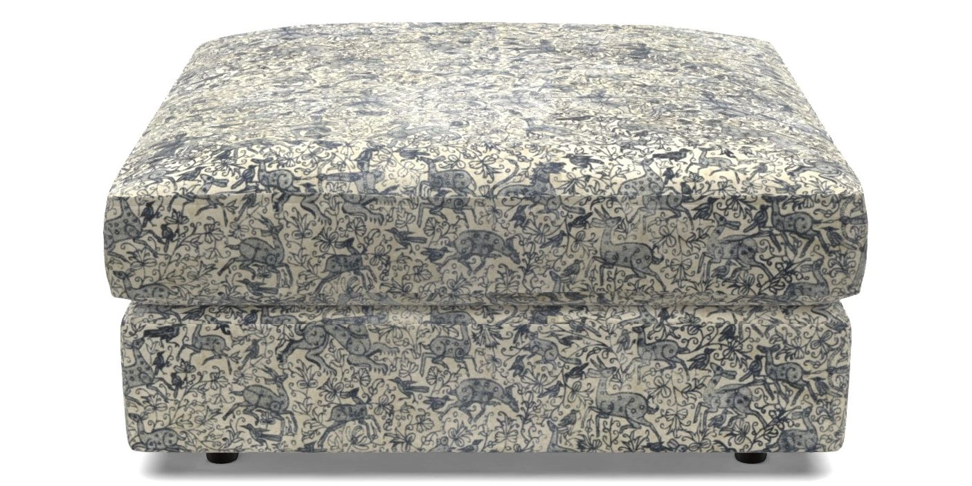 Slingsby Bespoke Standard Footstools in V&A Threads of India Opulent Velvets - Forest Creatures : V&A Threads of India Opulent Velvets - Forest Creatures Ink