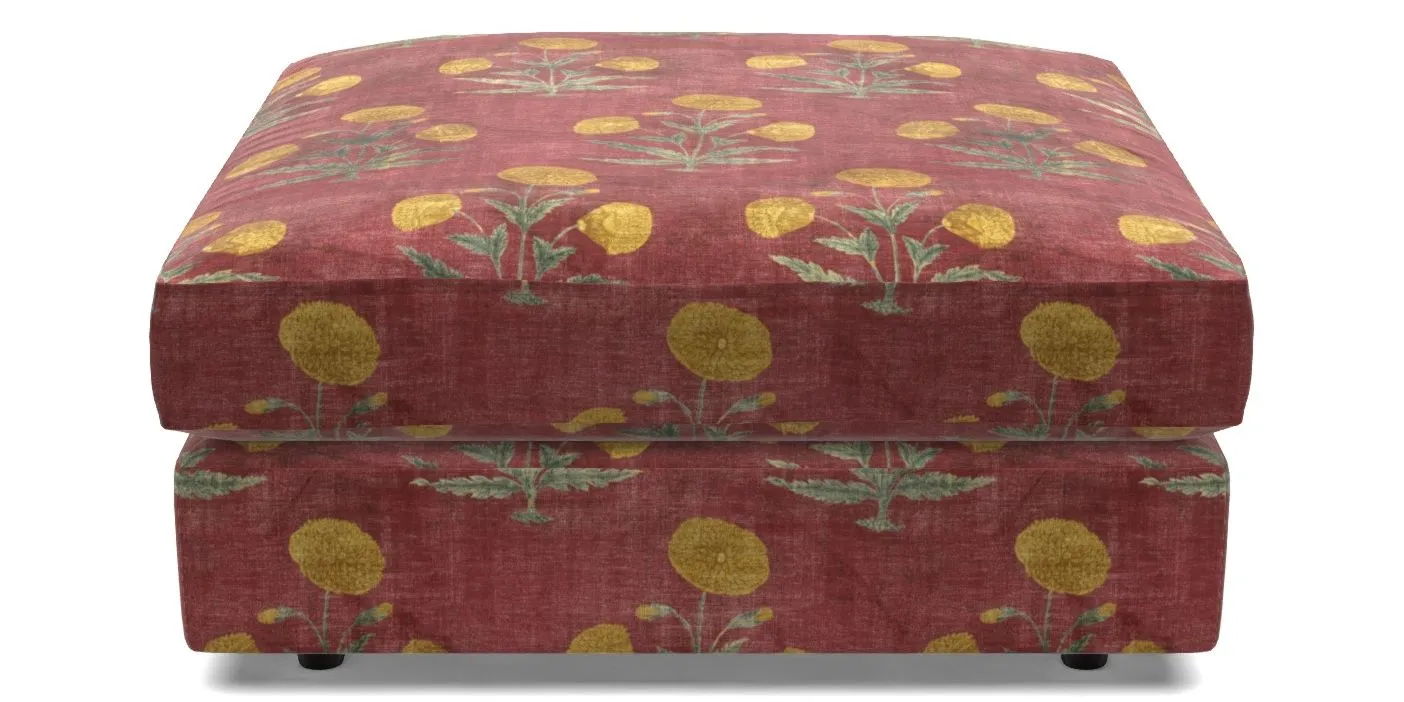 Slingsby Bespoke Standard Footstools in V&A Threads of India Opulent Velvets - Regal Poppy : V&A Threads of India Opulent Velvets - Regal Poppy Rouge