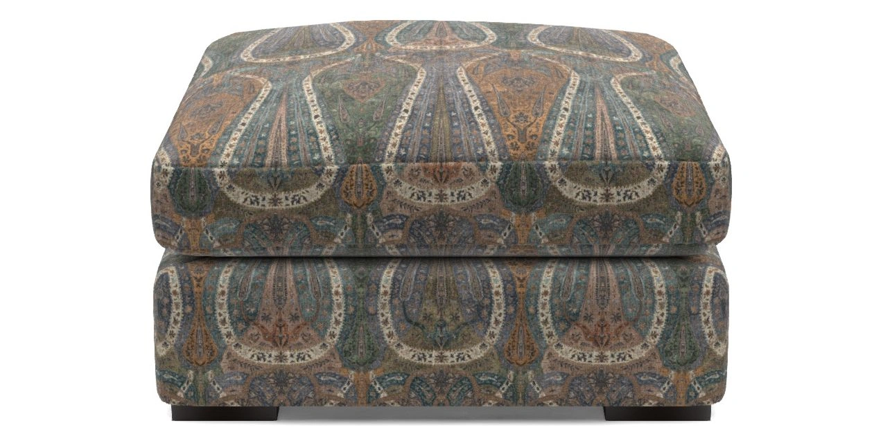 • Stockbridge Bespoke Combi Footstools in V&A Threads of India on Linen - Paisley Splendour : Steel