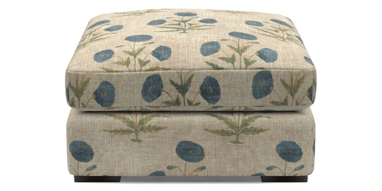 • Stockbridge Bespoke Combi Footstools in V&A Threads of India on Linen - Regal Poppy : Gentian