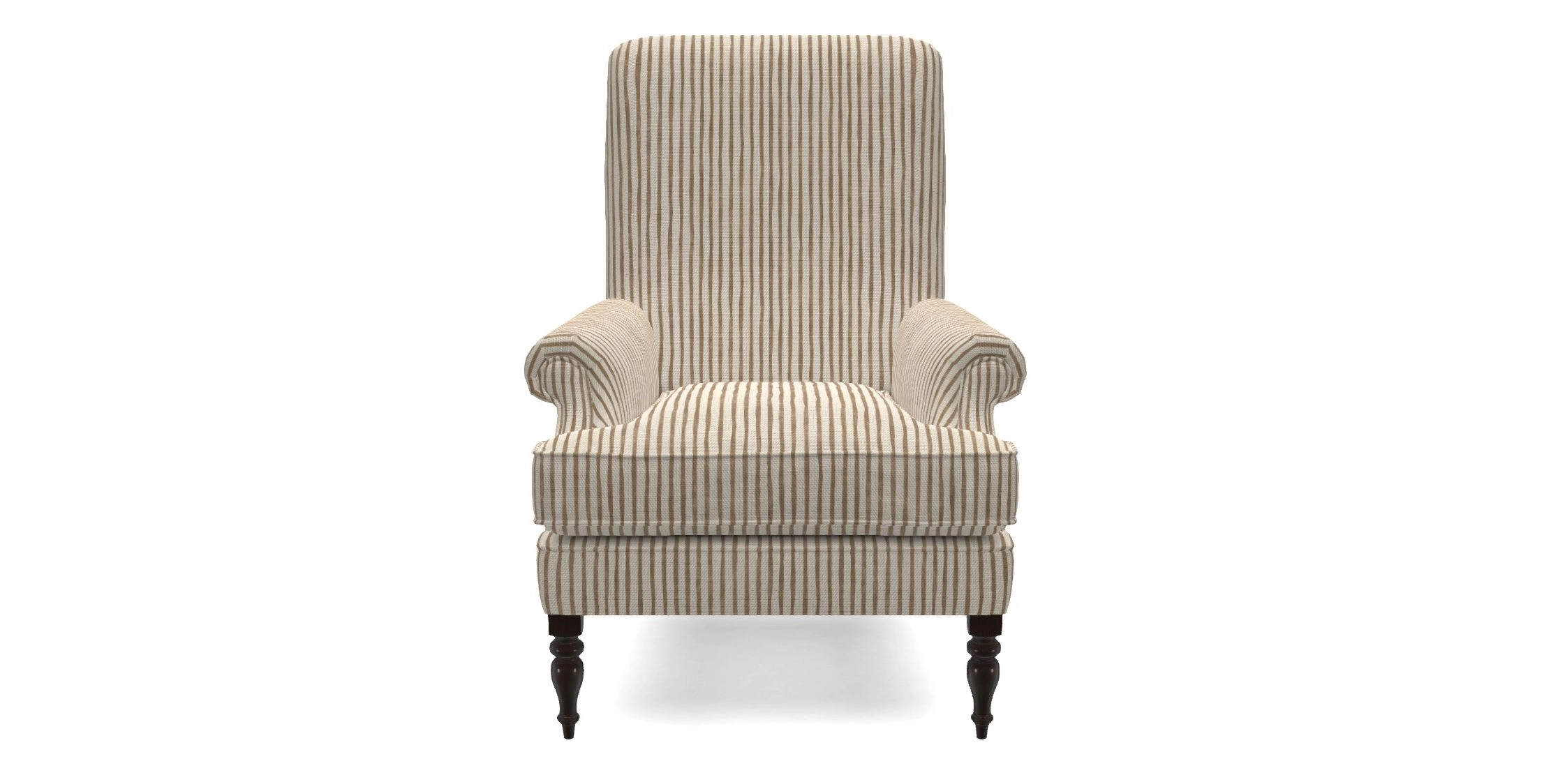 A classic armchair design with a compact profile, featuring a fixed back, and deep, cushioned seat. Its inset scroll arms and self-piped detailing add a touch of refinement, while the firm seat and high back ensure both comfort and support.
