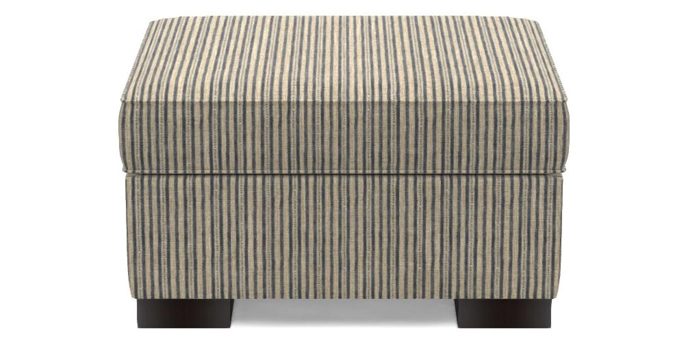 A deep, boxy stool with piped edges and optional storage, combining a strong visual presence with everyday practicality. View other products in this range.