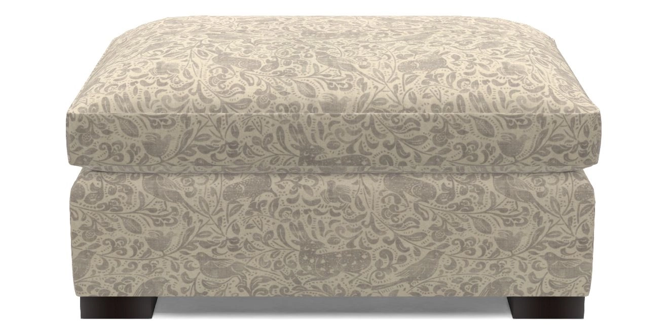 • Wadenhoe Bespoke Standard Footstools in V&A Drawn From Nature - Bird and Rabbit : Grey