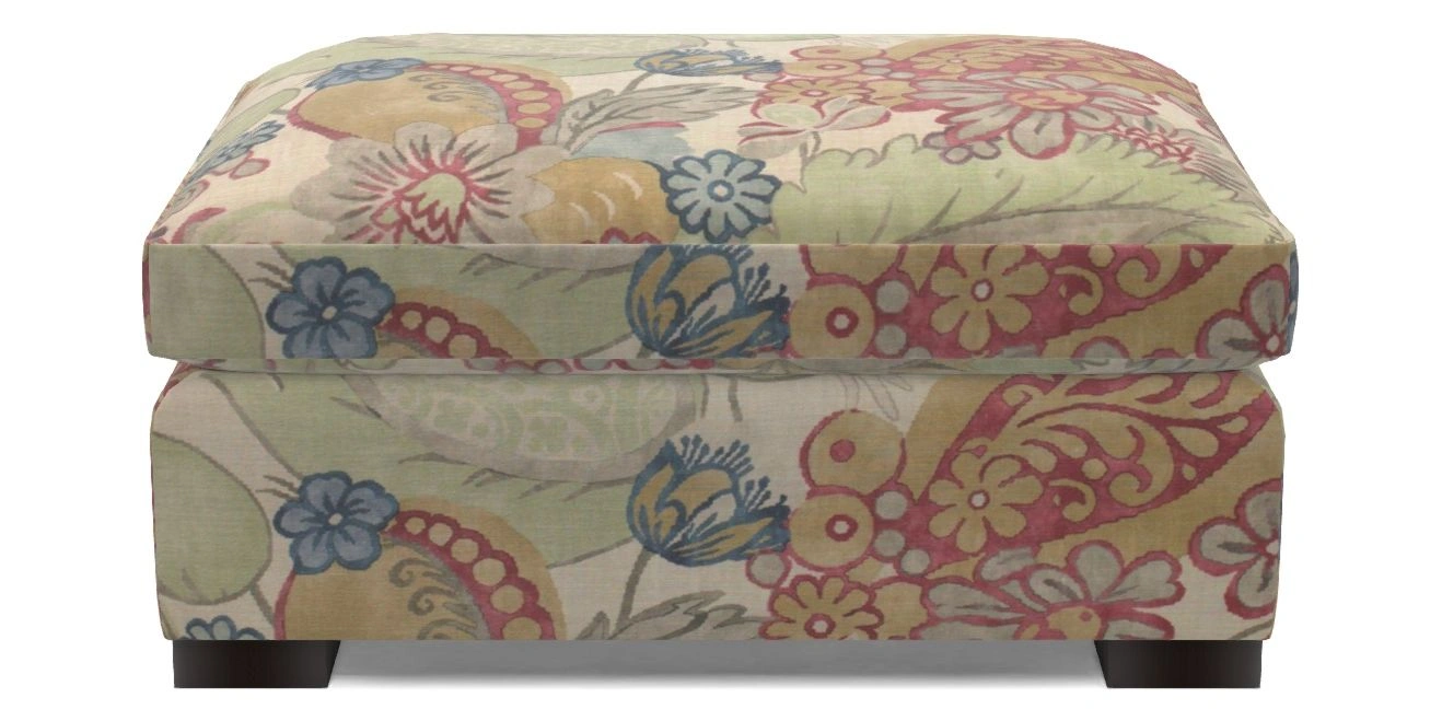 Wadenhoe Bespoke Standard Footstools in Floral Linen : Carcassonne Laurel